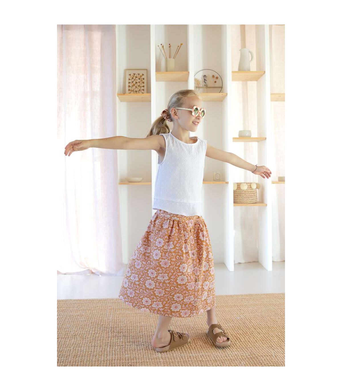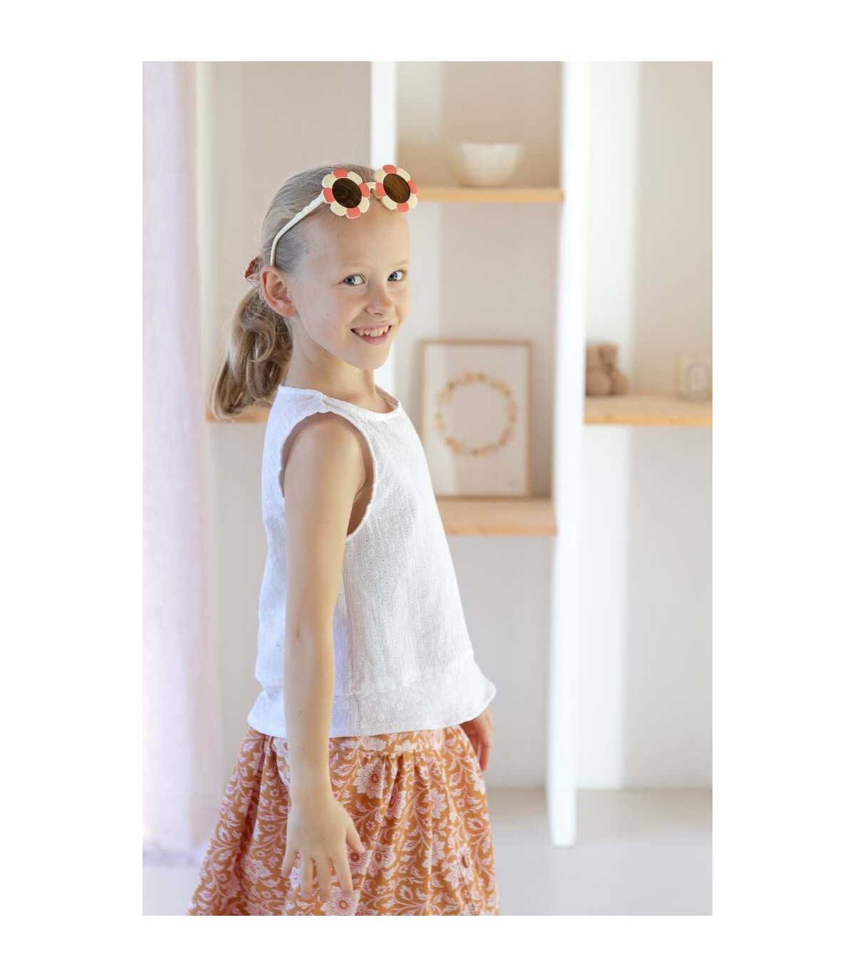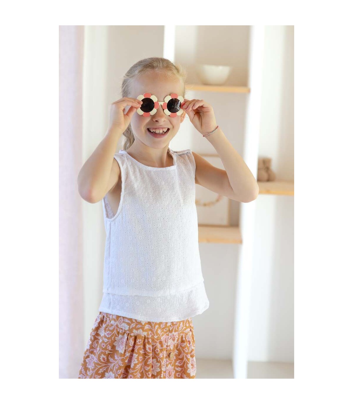 Chemise droite avec 2 boutons sur l'épaule et effet de superposition sur le bas aussi bien pour les filles que les garçons.