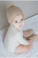 Bonnet avec bord côtes et pompon pour tenir la tête de votre bébé ou votre bébé bien au chaud. Et vous pouvez dorénavant le tricoter pour adulte aussi pour un look parent / enfant irrésistible !