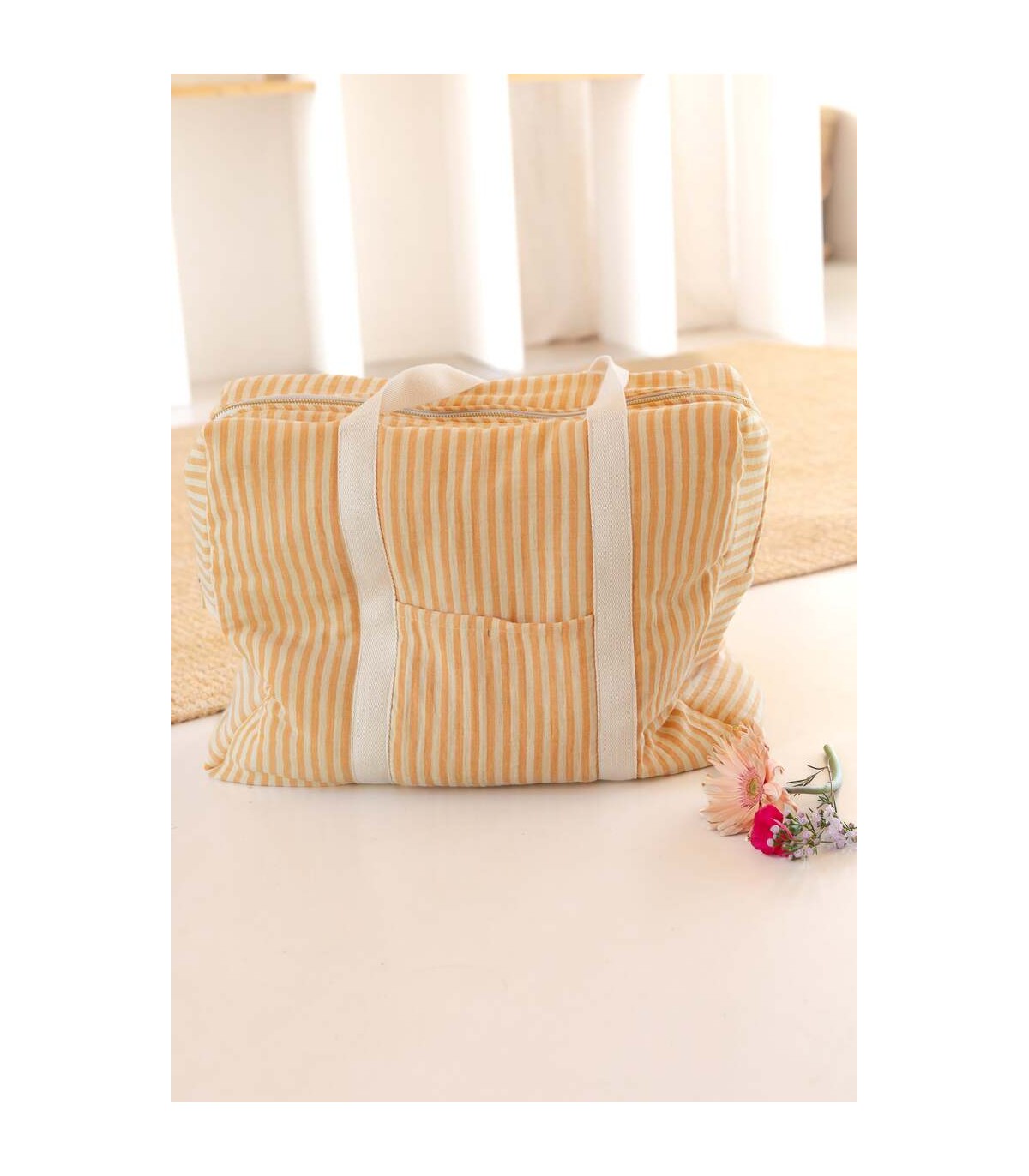 À propos : Gaze de coton rayure vanille