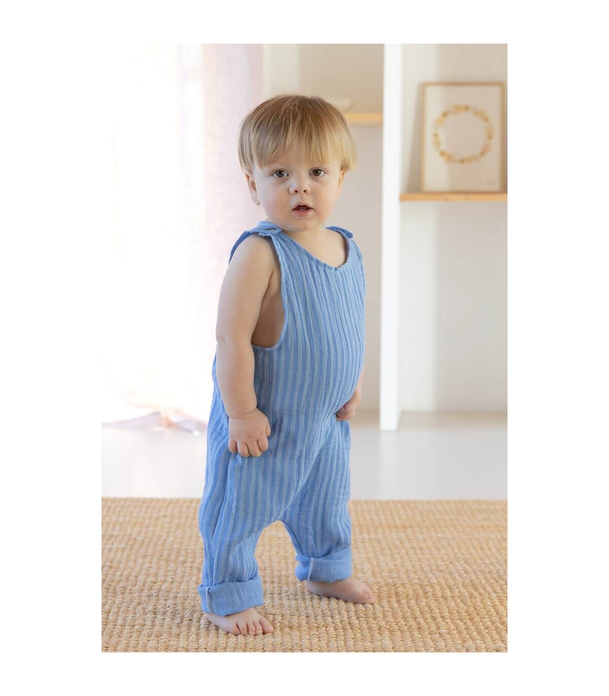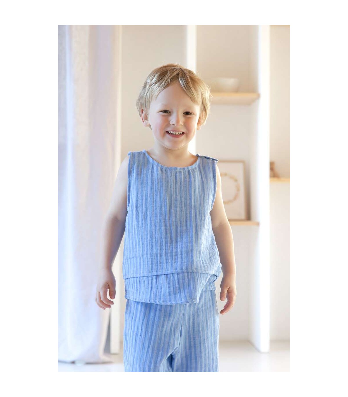 À propos : Gaze de coton rayure bleu